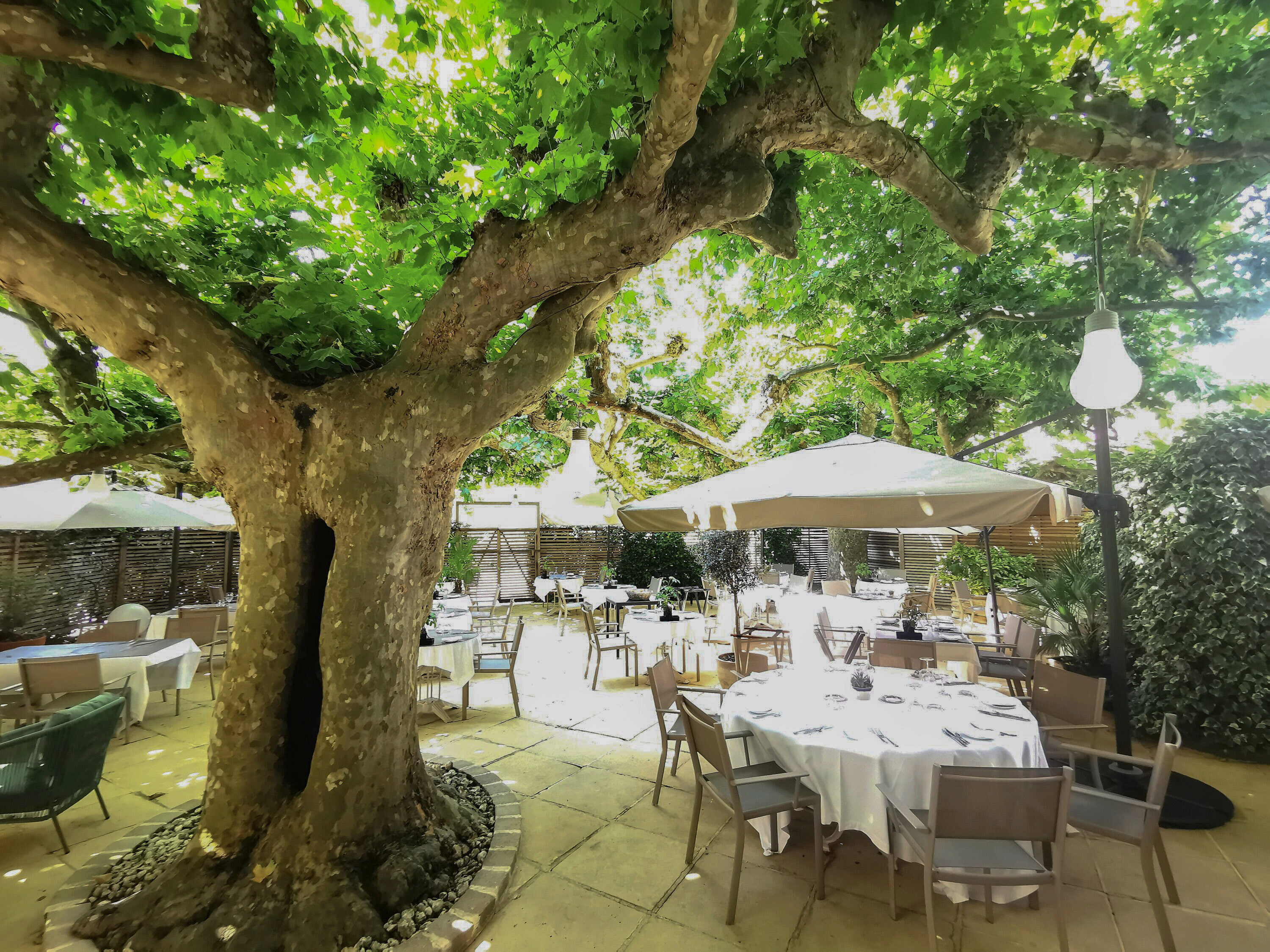 Aux beaux jours, la terrasse ombragée invite à la détente. Vous profitez ainsi d’un lieu paisible, idéal pour découvrir Langon et sa région.